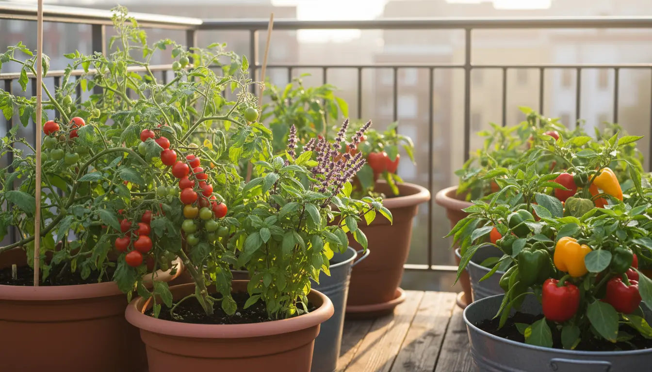 Select containers based on plant size and root depth. Small herbs do well in 6–8 inch pots, while tomatoes and peppers prefer 12–20 inch containers.