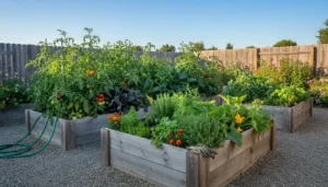 - Compost bin or simple pile area (plastic bin, tumblers, or wooden crate).