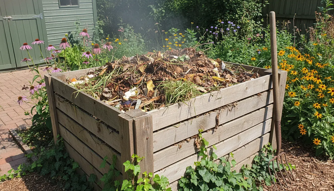 Use a 3x3x3 foot pile or a simple enclosed bin. Alternate layers of greens and browns to balance materials.