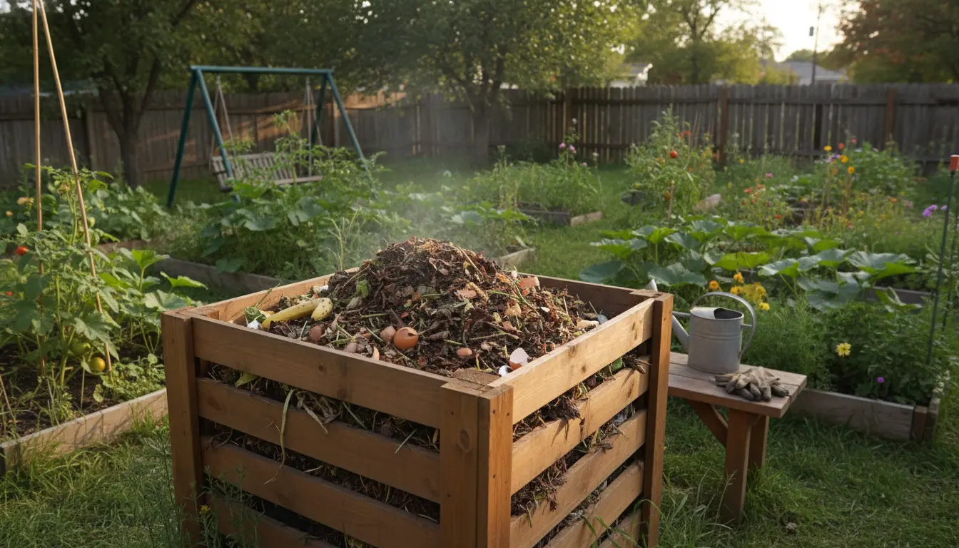 - Compost bin or tumbler (or a simple pile)