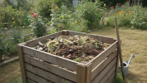 Home composting reduces landfill waste and returns organic matter to the garden. It improves soil structure and feeds plants naturally without chemical fertilizers.