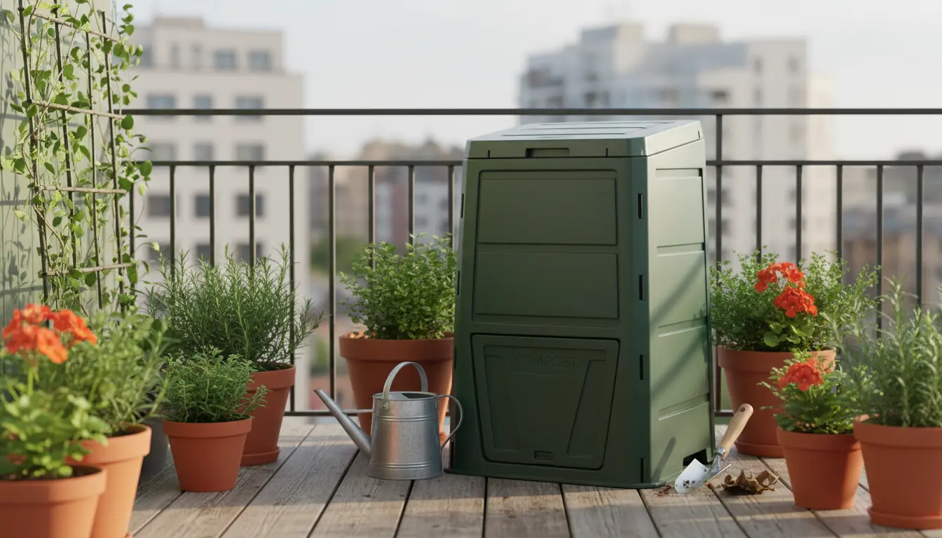 For balconies or small patios, use a compact compost tumbler or a worm composting bin (vermicompost) to save space and avoid odors.
