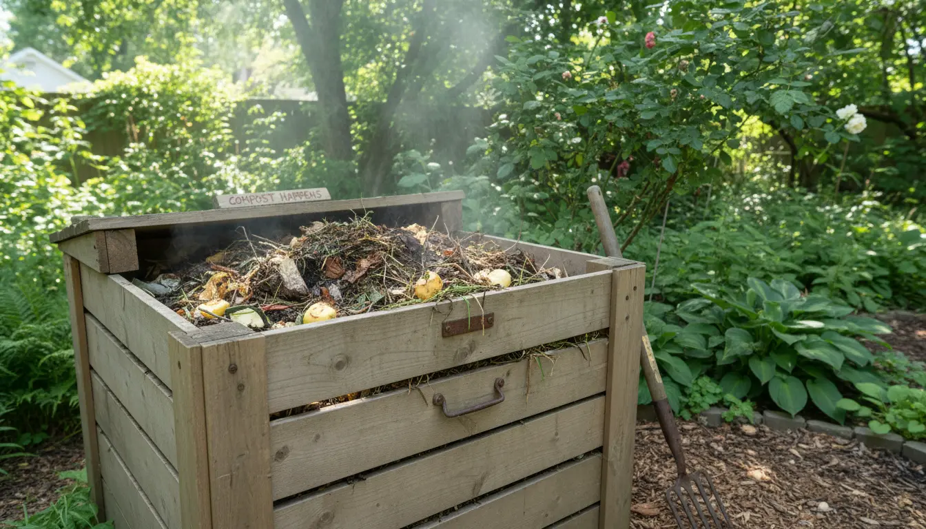 - Tools: pitchfork, compost thermometer (optional), bin or tumbler, kitchen scrap container.