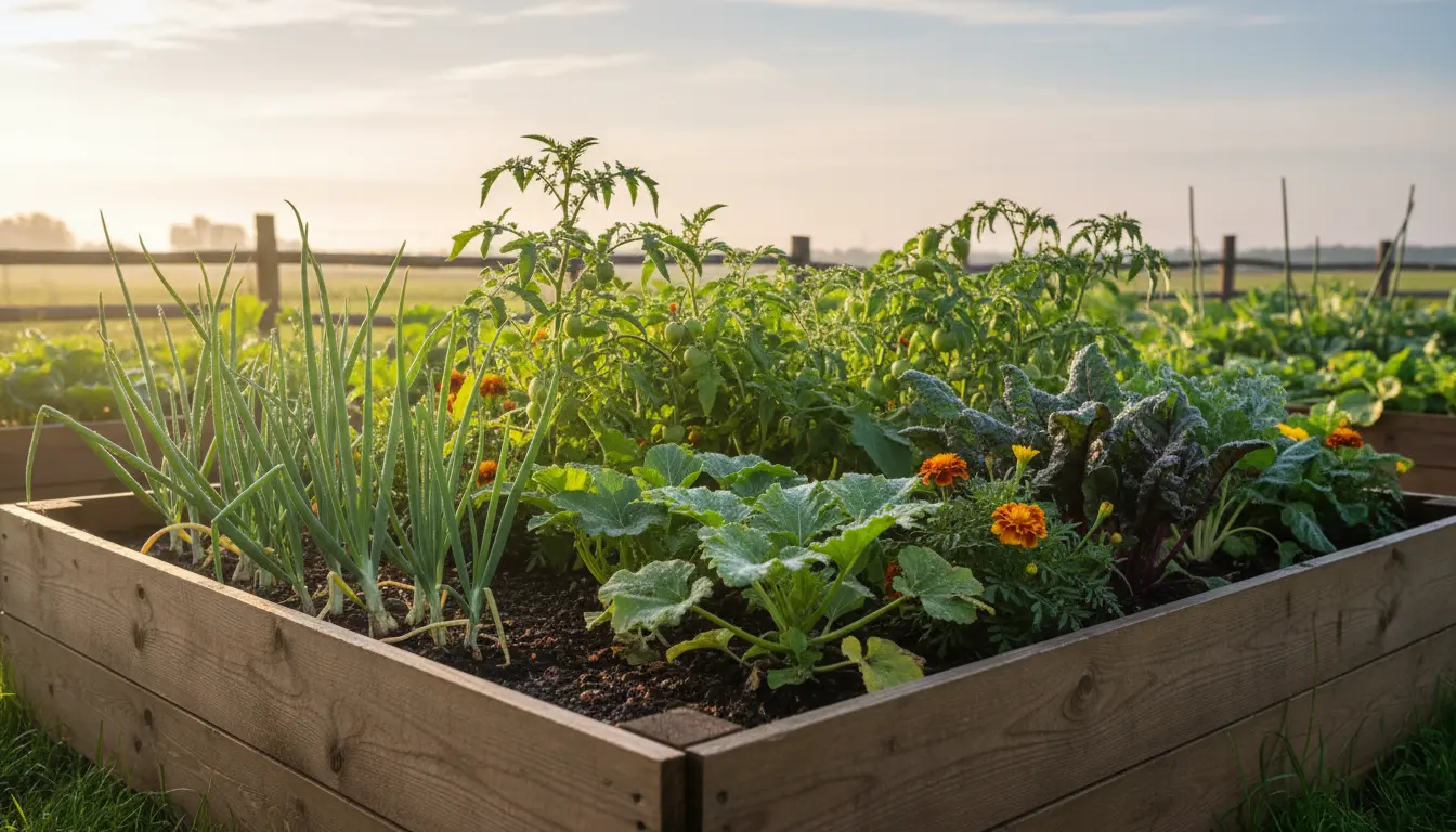 Choose vegetables suited to your climate and season. Group plants by maturity time and water needs to simplify care.