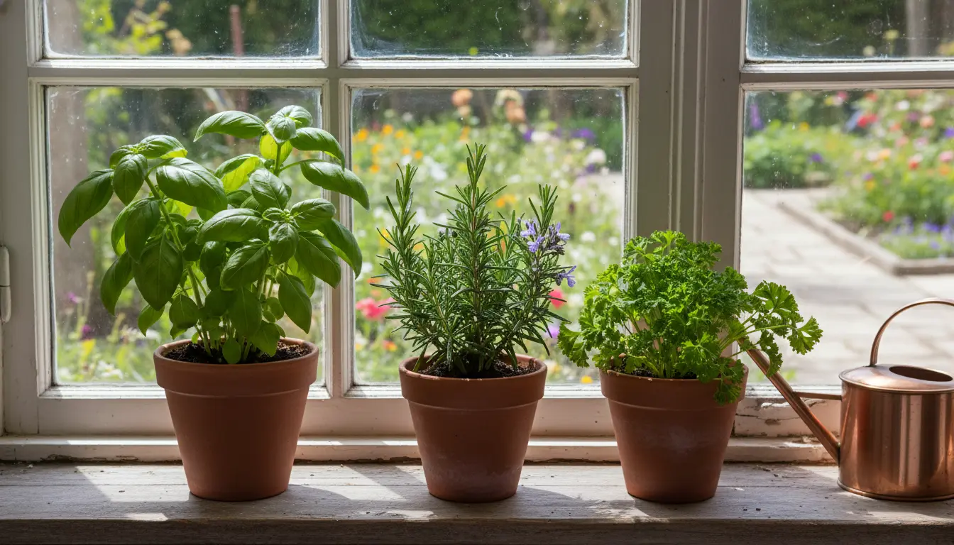Light is the most important factor. Most culinary herbs need 6–8 hours of bright light. South- or west-facing windows work best.
