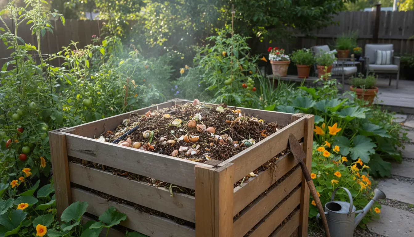 Composting cuts household waste and lowers emissions from trash hauling. It also improves soil structure and plant health when used in gardens or pots.
