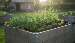 Use drip irrigation or soaker hoses for raised beds to conserve water and direct moisture to roots. For containers, water when the top inch of soil feels dry.