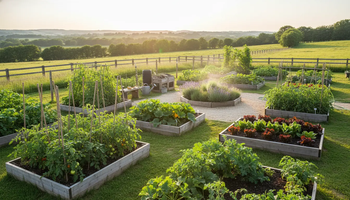 - Decide on raised beds, containers, or in-ground plots.